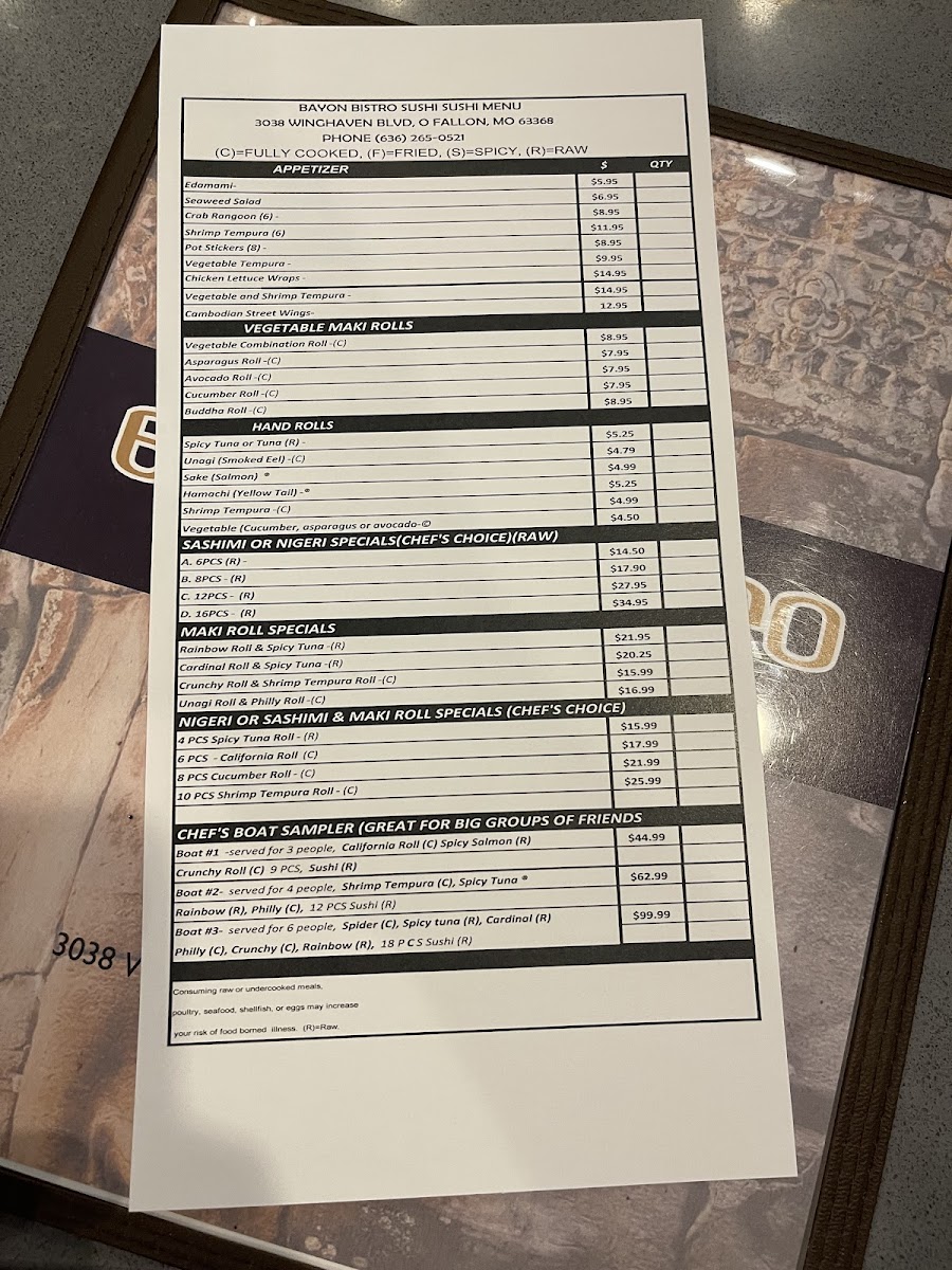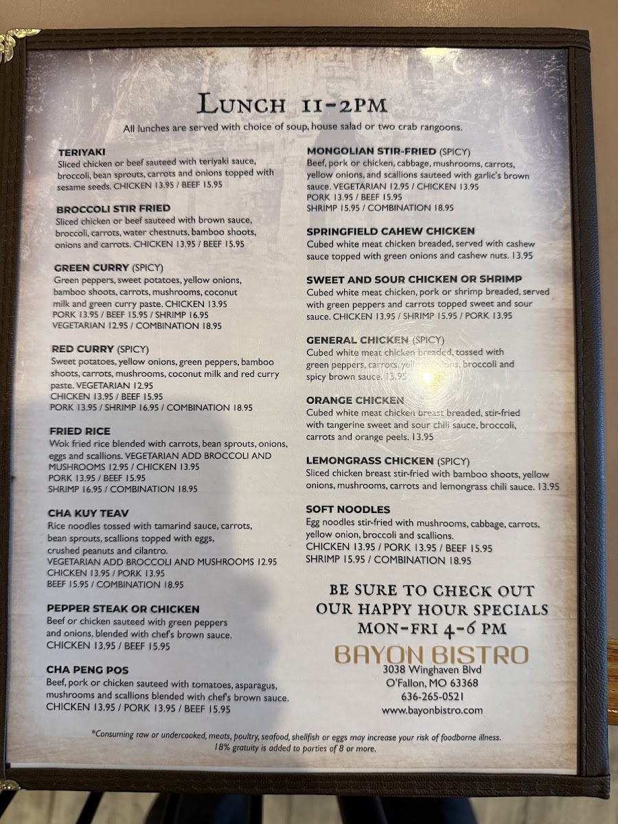 Bayon Bistro Menu